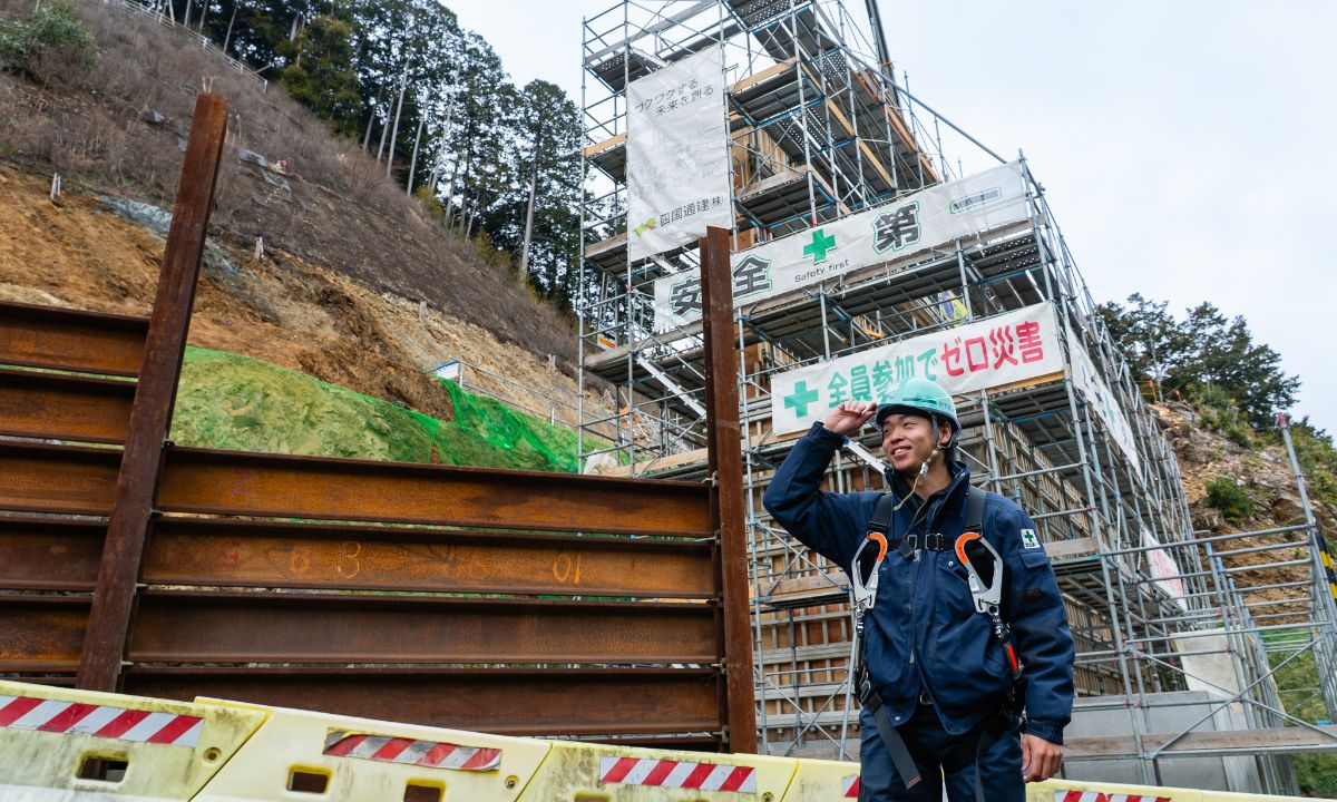 愛媛県大洲市肱川町山鳥坂にて山鳥坂ダム建設工事の一環として新入船橋の右岸側橋台の建設工事を担当させていただきました。